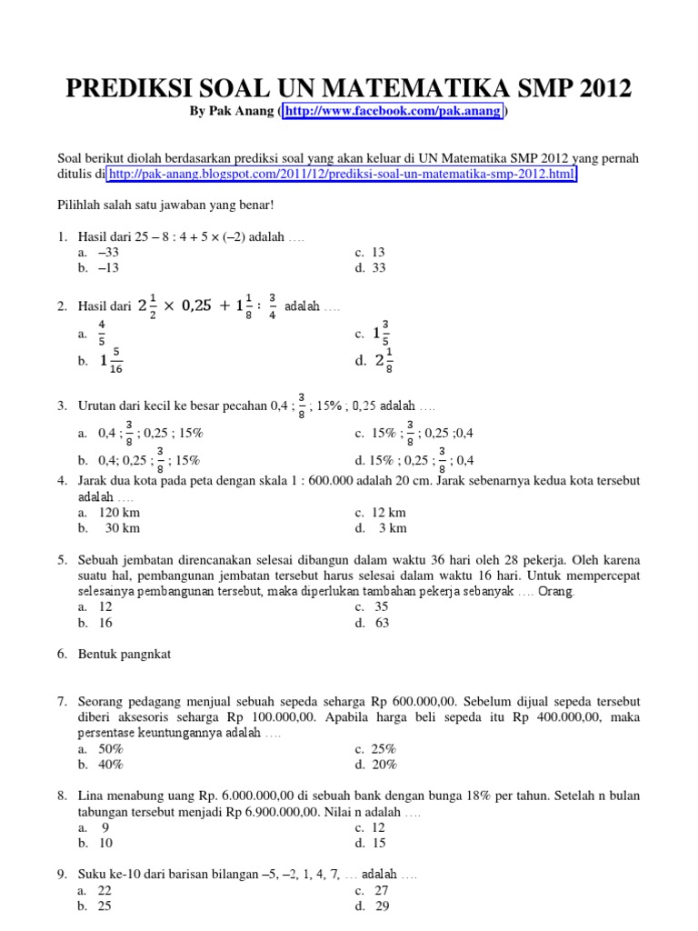 Kumpulan Soal Un SMP Matematika Sumber : www.scribd.com